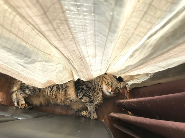 ↑カーテンの内側の一番暖かい場所にいる ちゃまめ